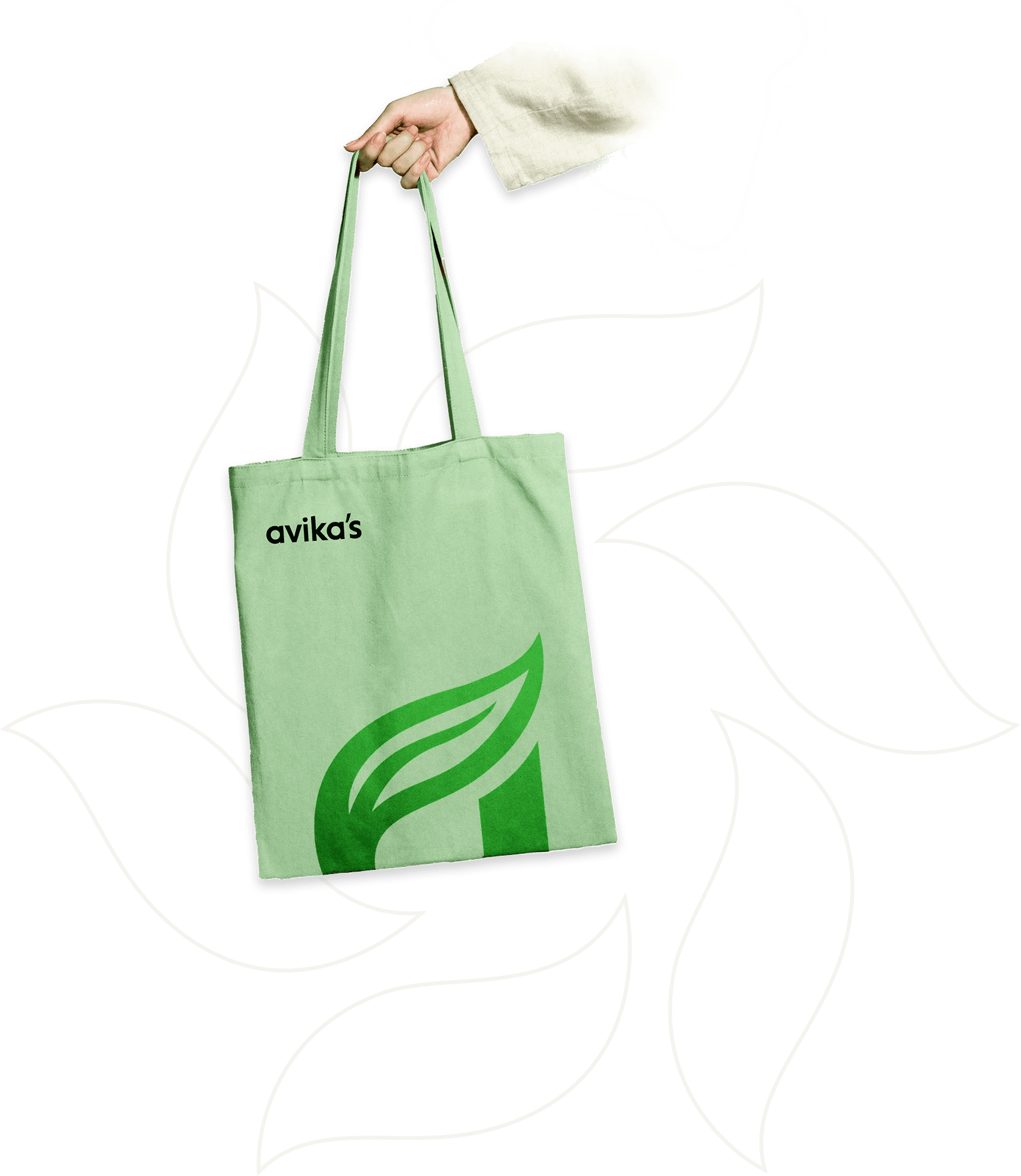 The Avika logo combines the brand’s initial with a leaf element, creating a mark that feels simple, organic and grounded. This fusion reflects the brand’s essence of natural, pure, and rooted in sustainability.
