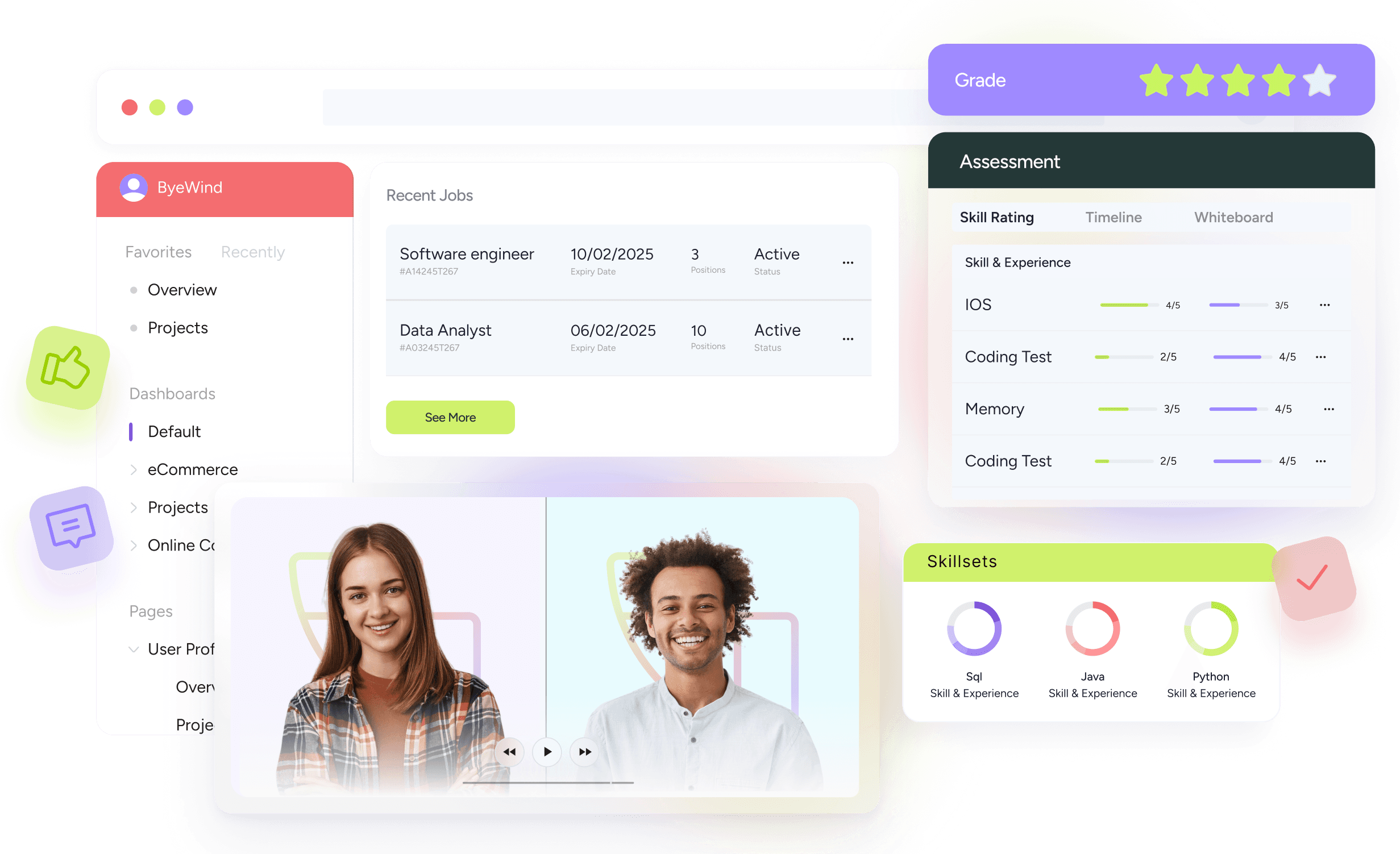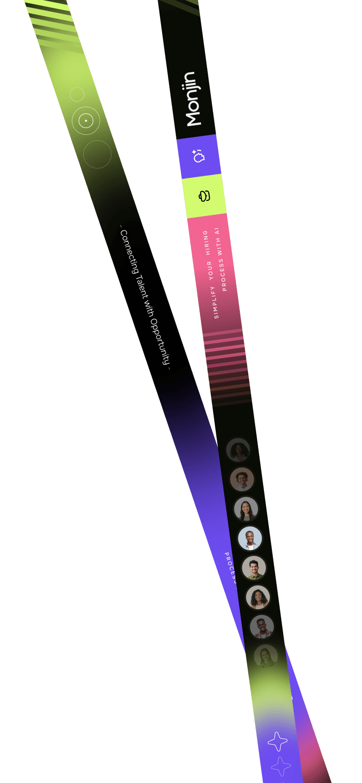 Monjin’s UI visual language is designed to be vibrant, approachable, and functional, bringing clarity to complex hiring interactions. The use of bold colors and soft gradients ensures a modern experience that feels both intuitive and engaging.