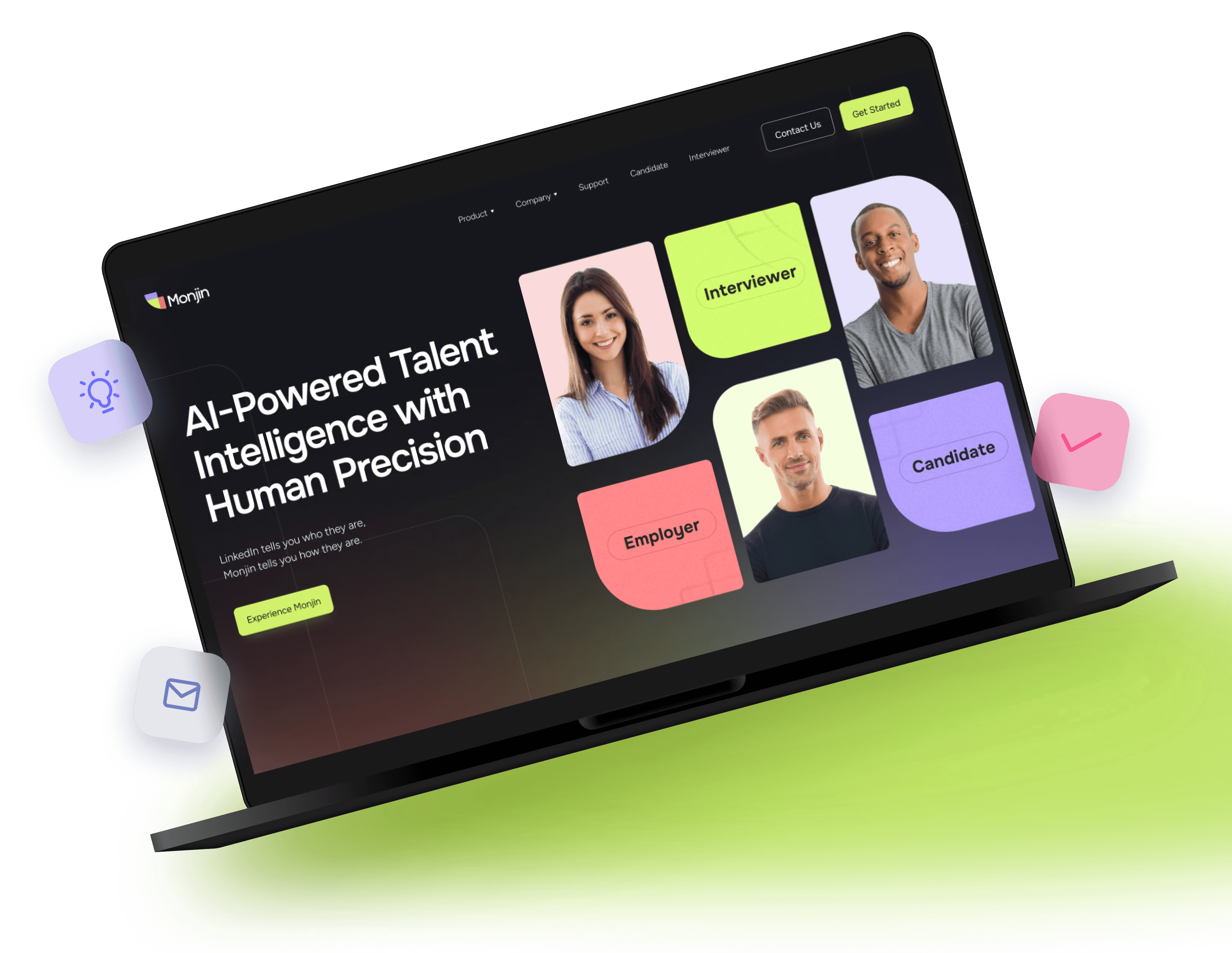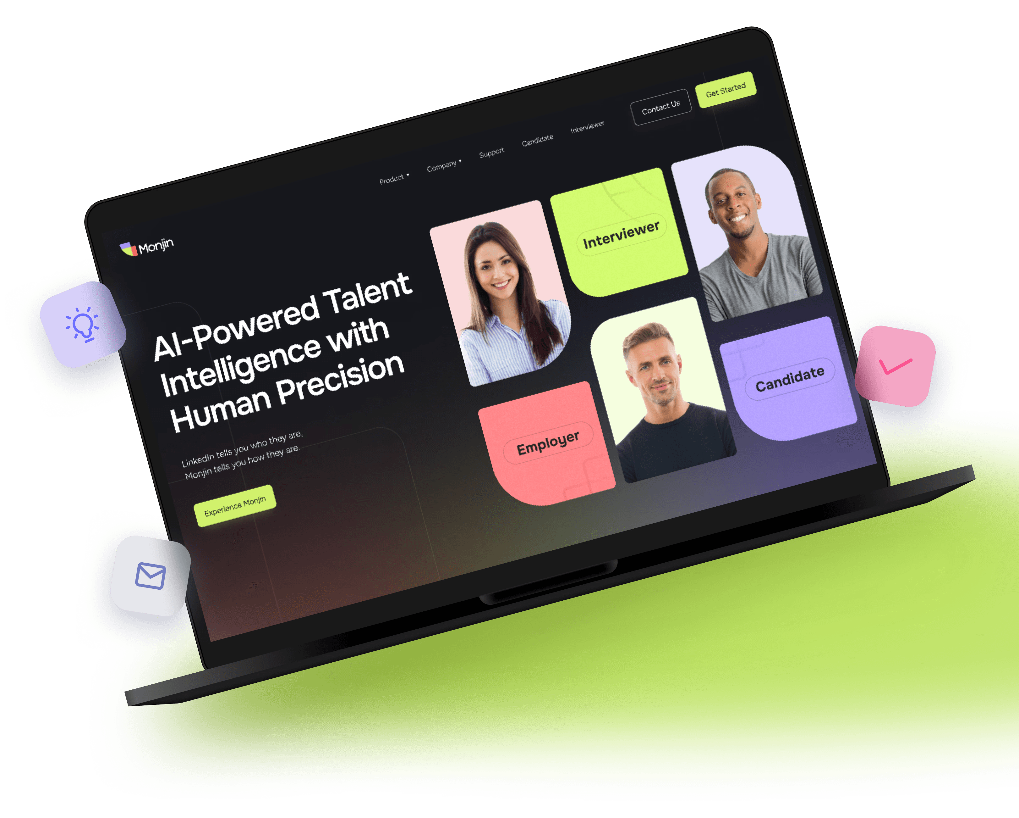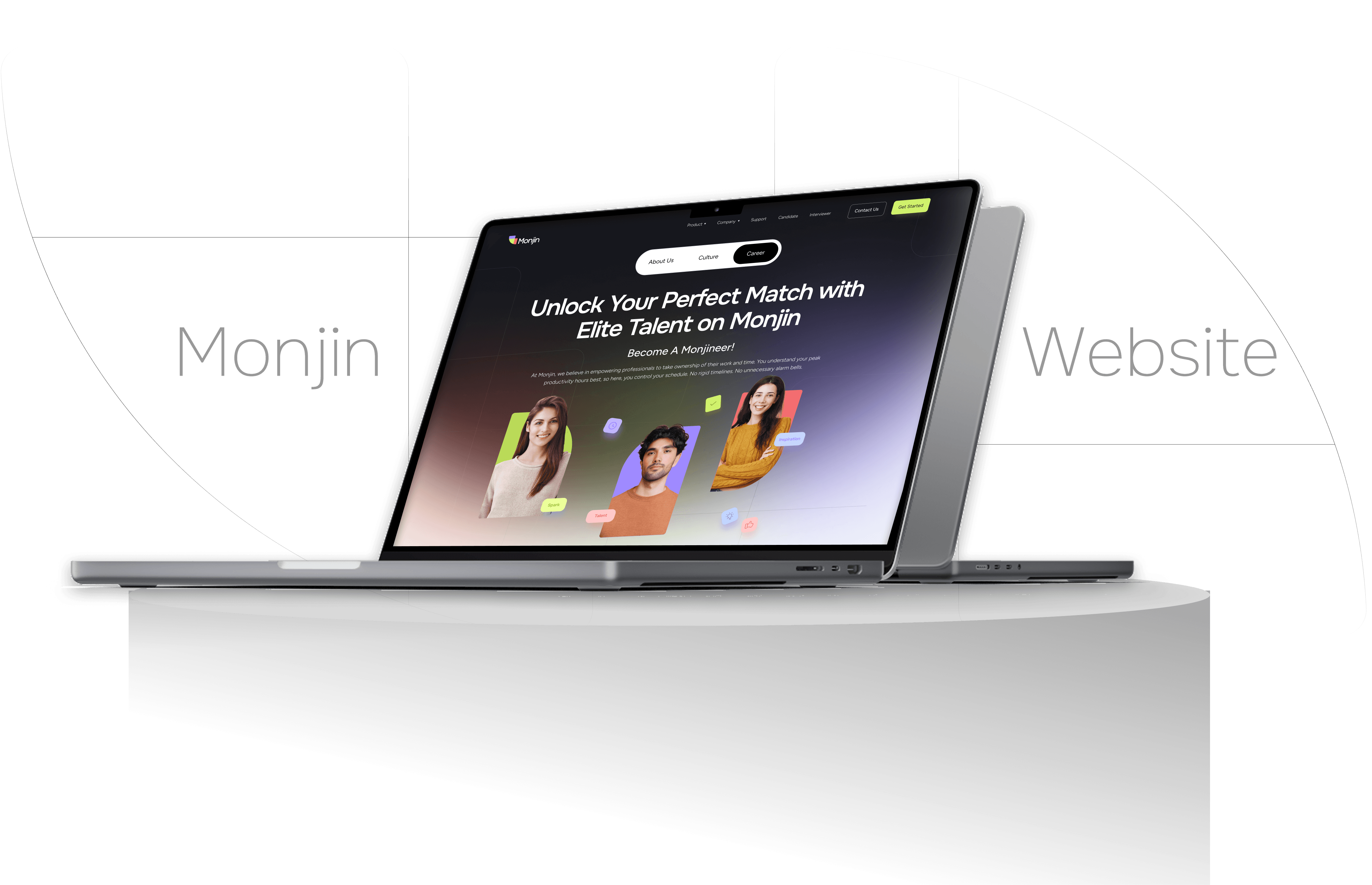 Monjin, an AI-powered talent intelligence and interview platform, needed a cohesive visual identity that could scale across brand, marketing, and digital product.