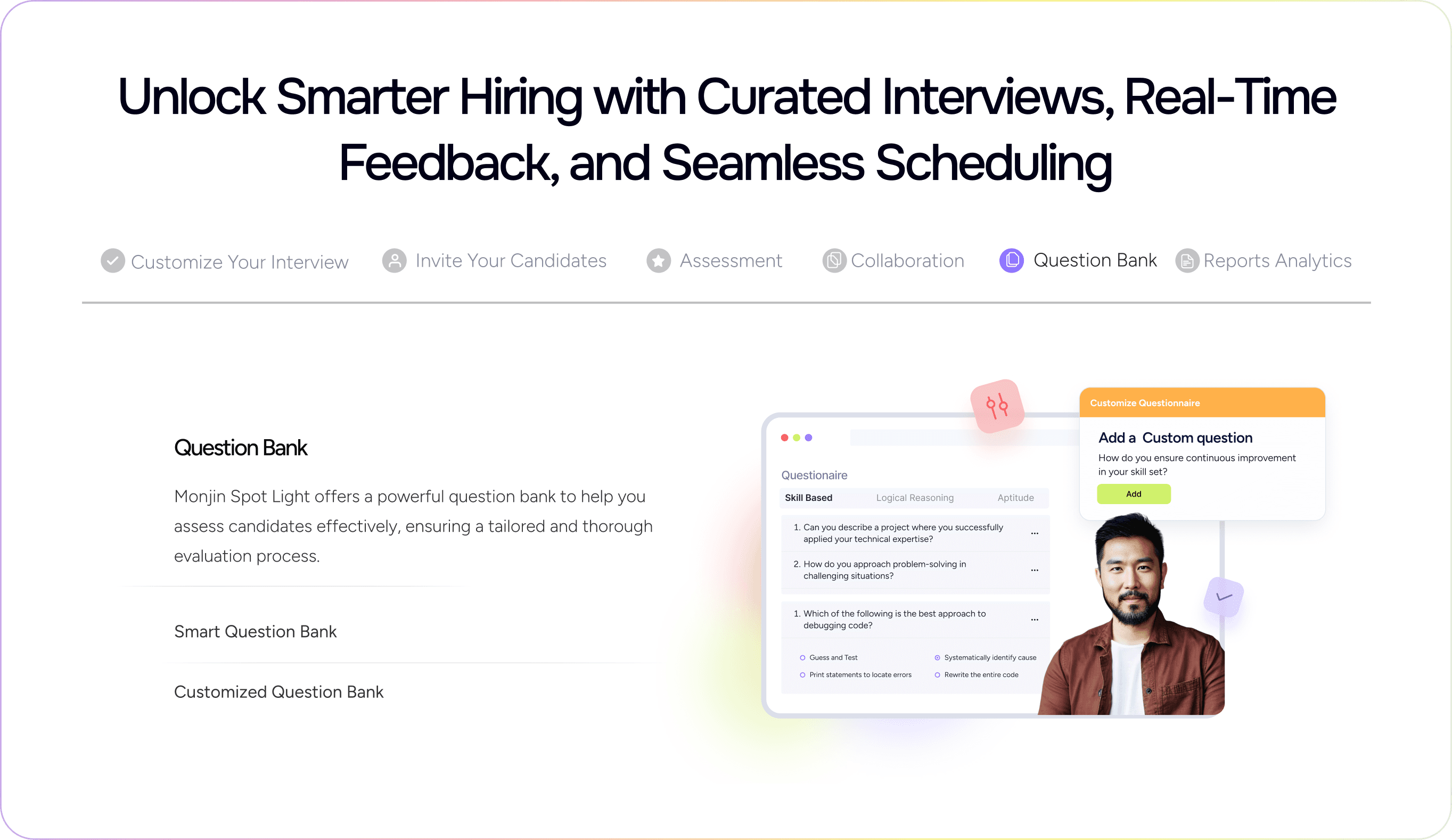 The color palette is radiant and youthful to depict modern and innovative approach of Monjin in this traditional field of interviewing.
