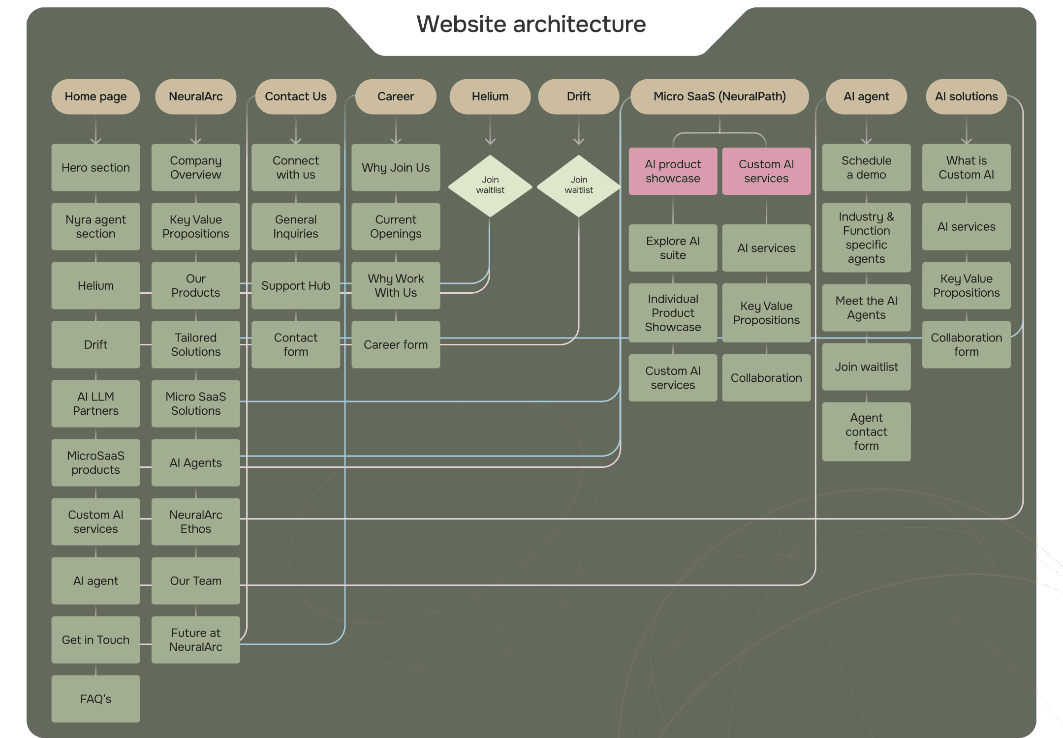 The NeuralArc website was designed to be bright and inviting, built on a distinct visual language that reflects the brand’s identity. A balance of dark and light themes creates contrast, making the experience both modern and engaging.