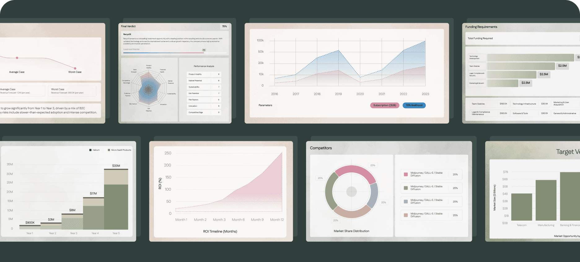 NeuralArc’s palette blends earthy tones with soft pastels, creating a calm yet distinctive identity. This approach stands out in the AI market, where bold neon and tech heavy palettes dominate.
