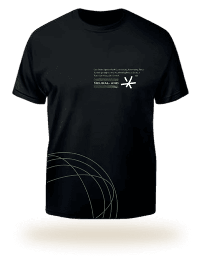 The shirt designs merge AI inspired themes with a subtle human touch, integrating the brand’s unique visuals. They extend NeuralArc’s identity into wearable, expressive pieces that feel both modern and approachable.