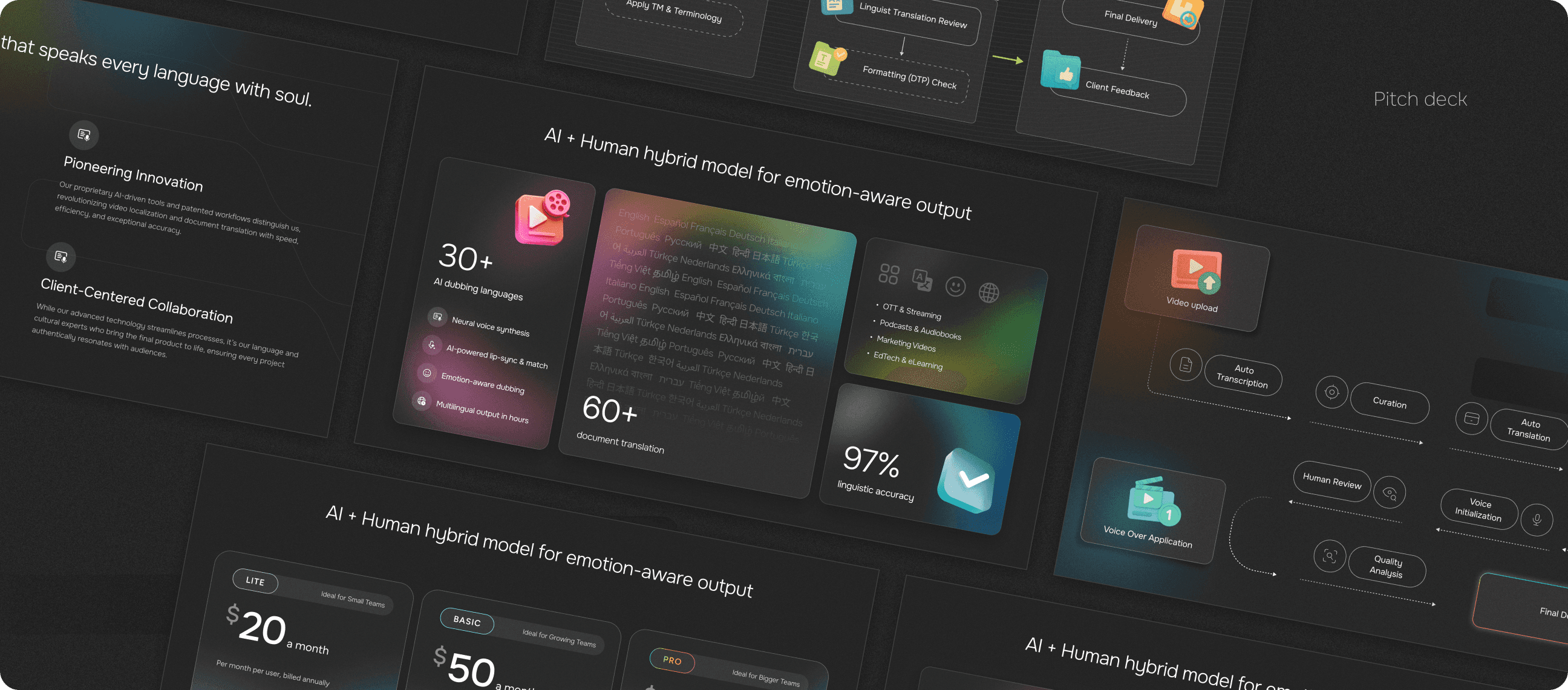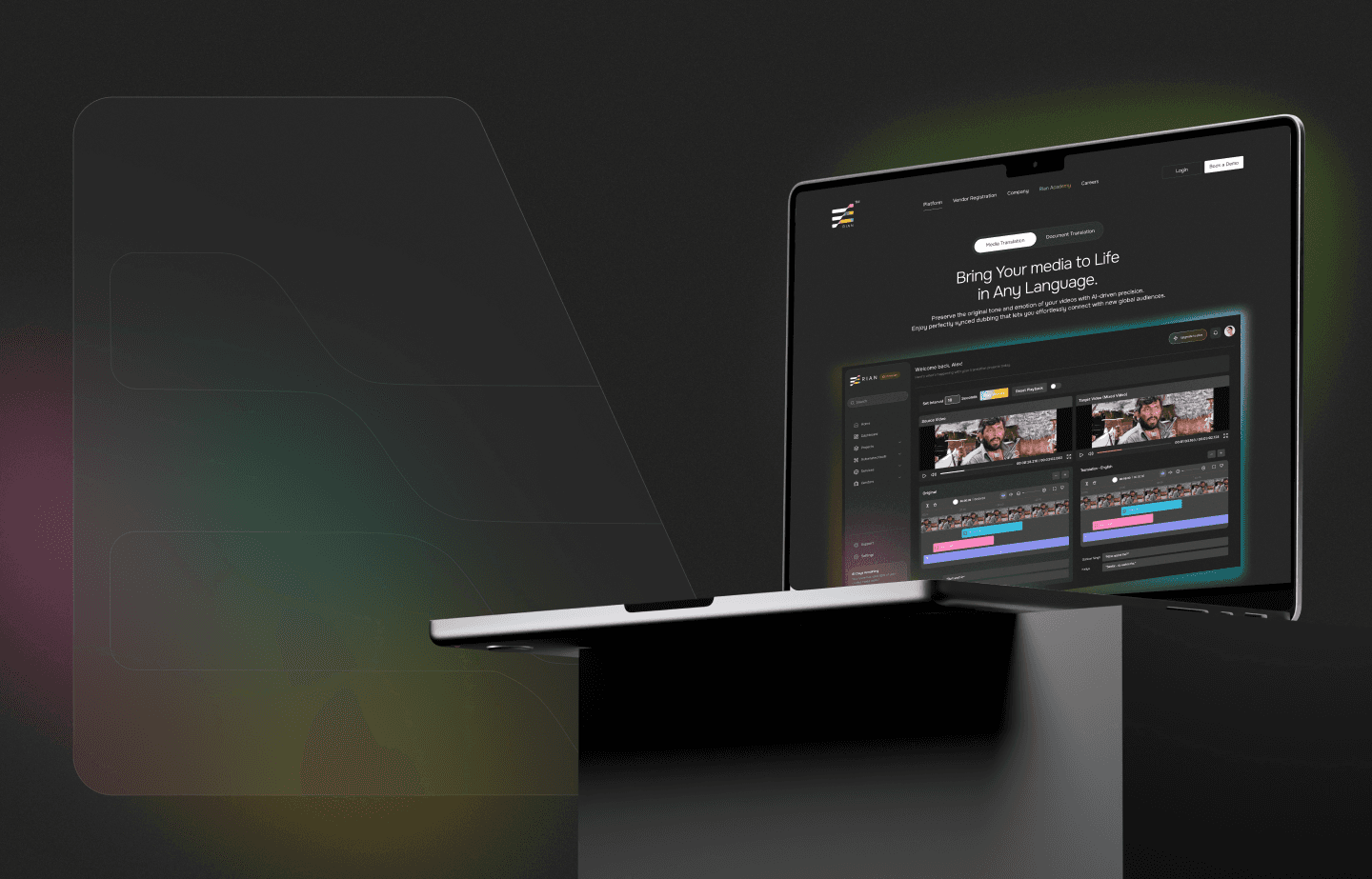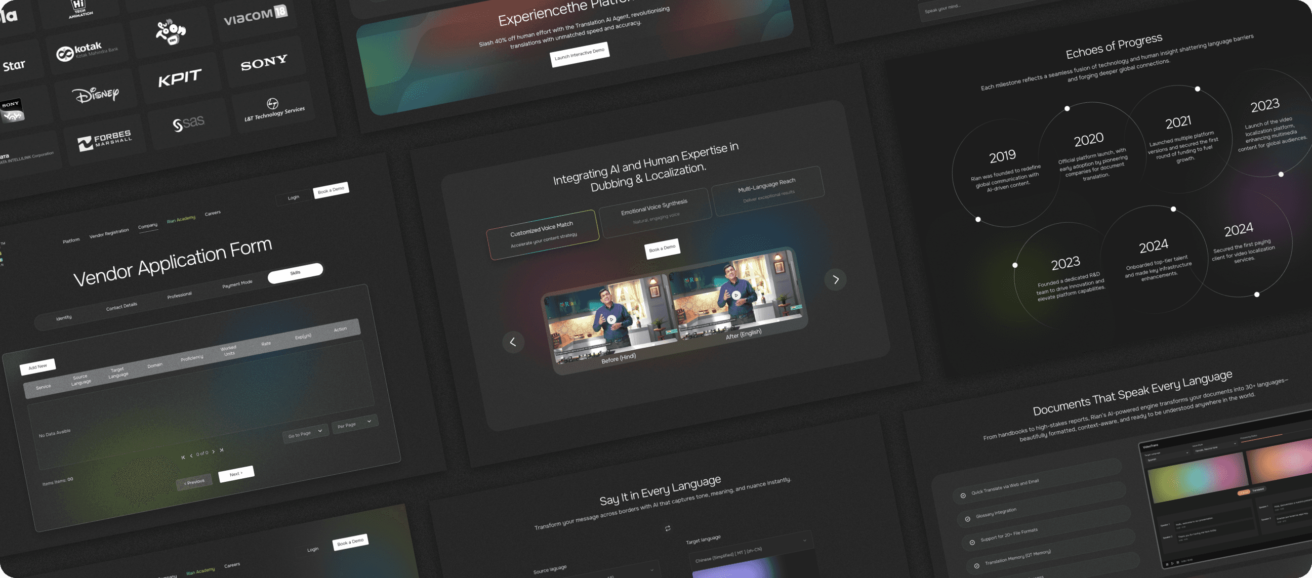 Rian’s platform is at the core of its business, so it was essential to do it justice. The page highlights its two key services, Media Translation and Document Translation, through an interactive tab structure, making the platform easy to navigate and intuitive for users to explore.