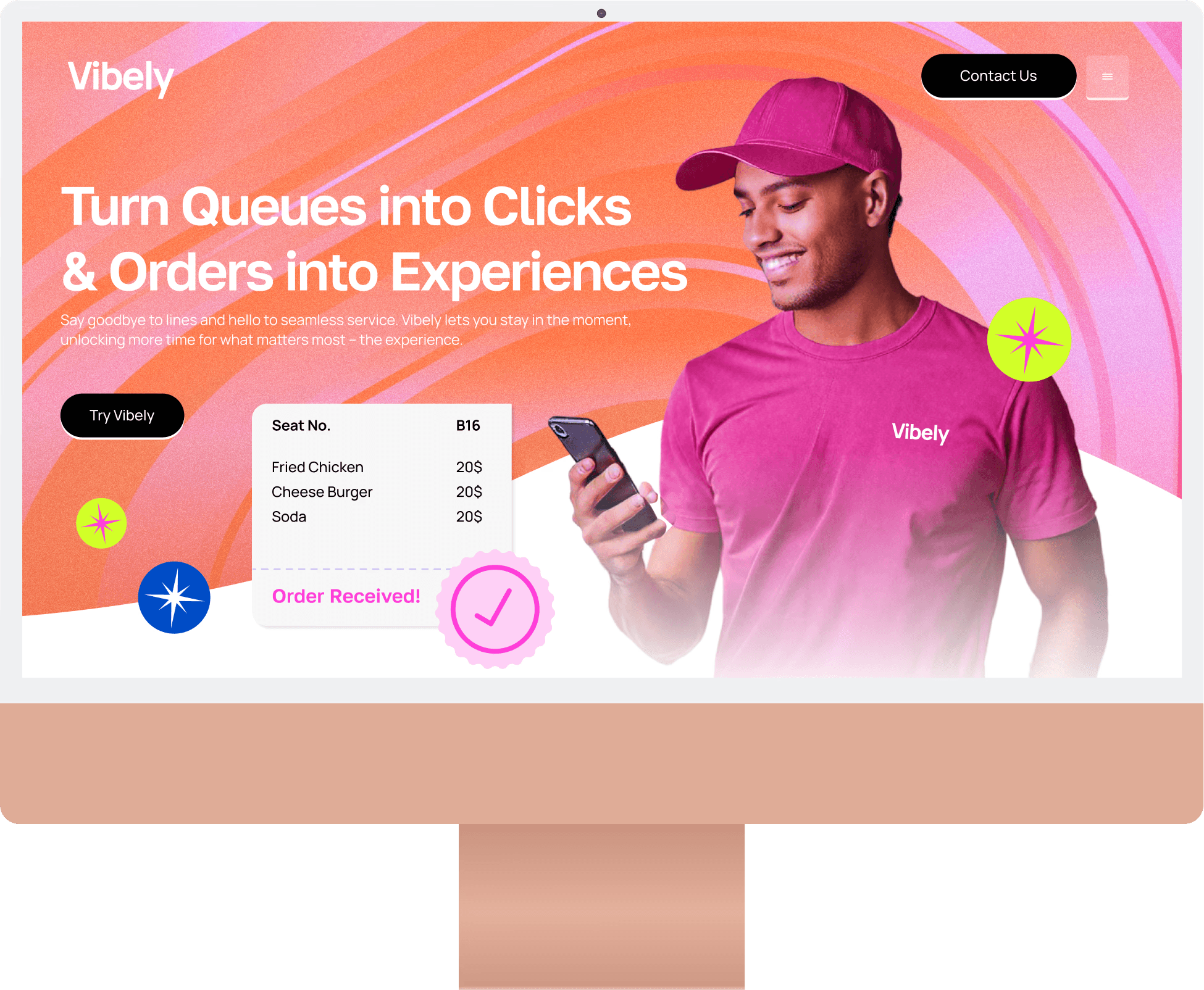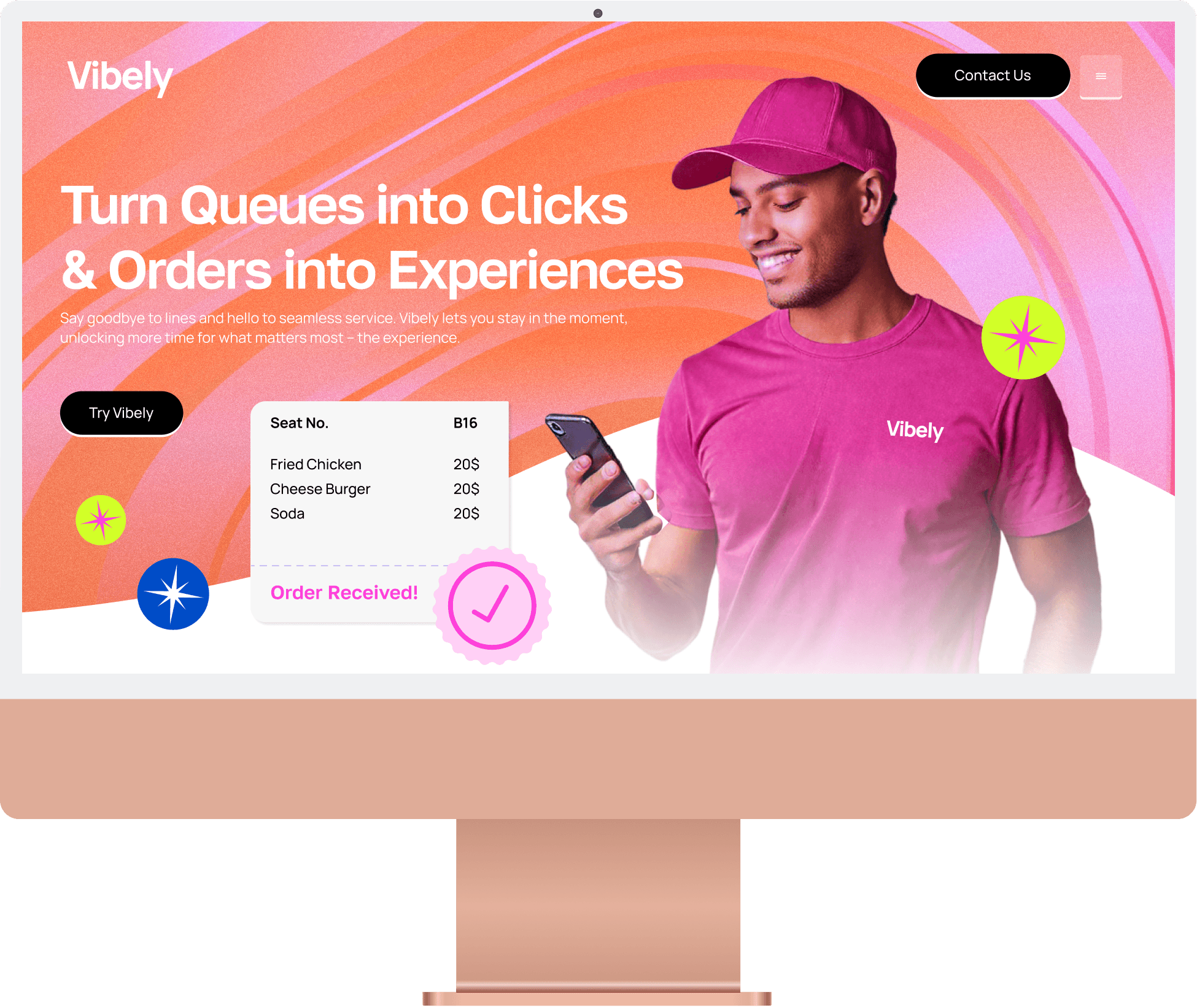 Vibely is an event tech platform that brings food, drinks, and merchandise straight to your seat with a single scan so you never miss the vibe.