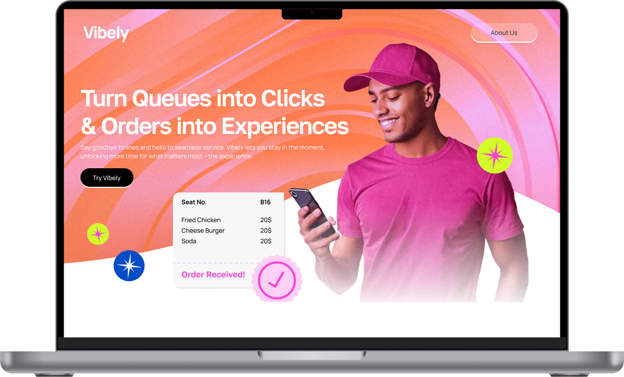 The website was designed to highlight key challenges and how Vibely solves them. Its playful, vibrant, and global look reflects the energy of live venues while engaging diverse audiences.